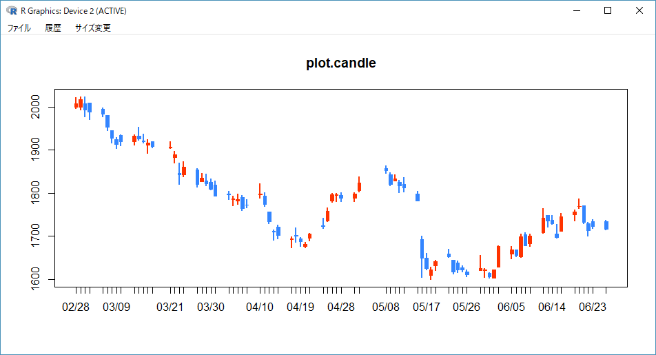 また、xtsライブラリにもローソク足を描く機能が備わってるものの、